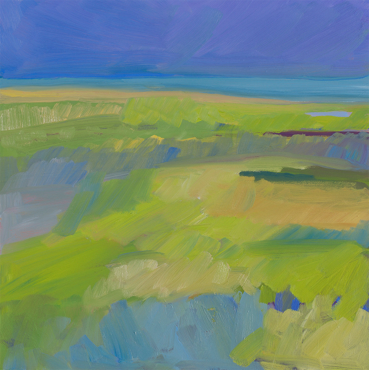 The most lovely combination of marsh grass, and salt water spray on a windy day inspired this colorful and energetic painting. The salt marshes in the...
